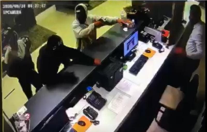 Assaltantes armados invadiram um hotel na madrugada desta quinta-feira (24) em Timbó, no Médio Vale do Itajaí. Toda a ação dos criminosos dura menos de um minuto e foi flagrada por câmeras de segurança do estabelecimento, que fica na Avenida Getúlio Vargas, no Centro da cidade.