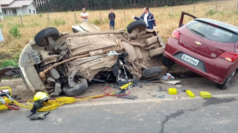 Já o segundo carro, um GM Onix, com placa de Mafra, ficou tombado na via. Dentro estava um casal de idoso. O homem, de 67 anos, foi retirado e conduzido à unidade de pronto-atendimento da cidade com lesões leves. Já a esposa não resistiu à gravidade dos ferimentos e morreu ainda no local.