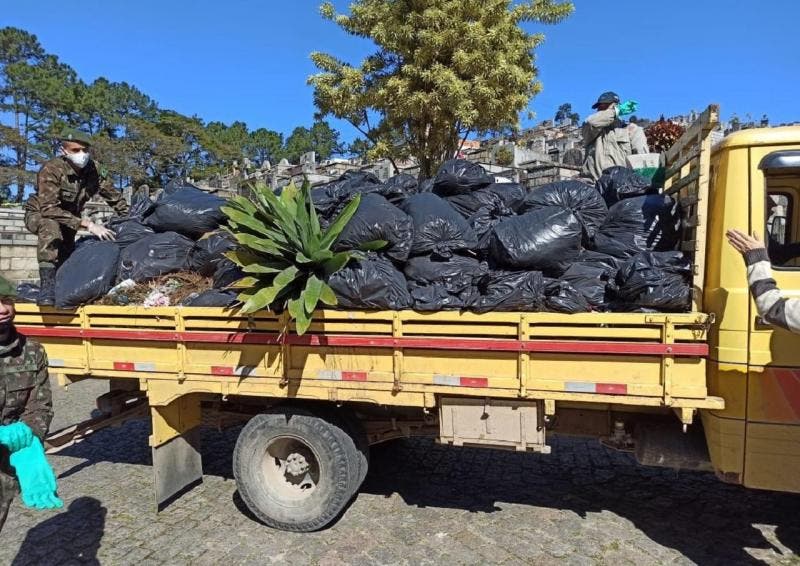 Cerca de 3 toneladas de lixo foram recolhidas do Cemitério Municipal de Joinville durante uma ação realizada durante a quinta-feira (29) na região central. Foram seis caçambas cheias, divididas entre resíduos orgânicos e recicláveis.