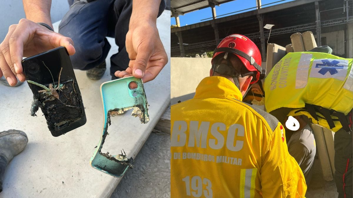Placa de concreto de 450 kg cai sobre trabalhador e celular explode com impacto em SC