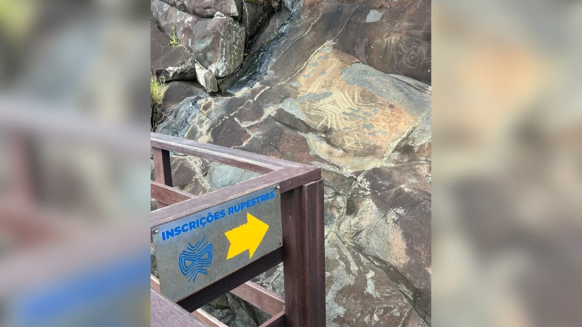 Em uma das pedras, há pelo menos nove gravuras polidas na parede de um dique de diabásio e em um bloco ao lado. Muitas apresentam figuras antropomorfas, que representam formas humanas, em bom estado de conservação. As inscrições estão em uma Área de Preservação Permanente (APP).