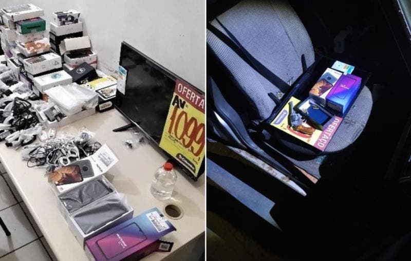 A Polícia Militar informou que encontrou dentro do carro uma arma calibre 32 com numeração sumprimida, caixas de celulares e uma televisão. Os homens de 32, 24 e 18 anos receberam atendimento médico após a batida e foram presos em seguida.