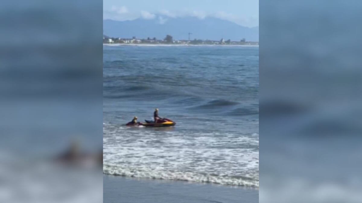 O corpo do homem foi colocado na moto aquática e conduzido até uma área mais isolada da faixa de areia, com acionamento do Instituto Médico Legal (IML).