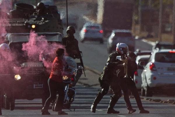 “O homem foi detido por resistência, após ter entrado na frente dos tanques militares da Marinha a fim de impedir o desfile na Esplanada. Ele foi encaminhado à 5ª DP para providências”, informou a PMDF no comunicado.