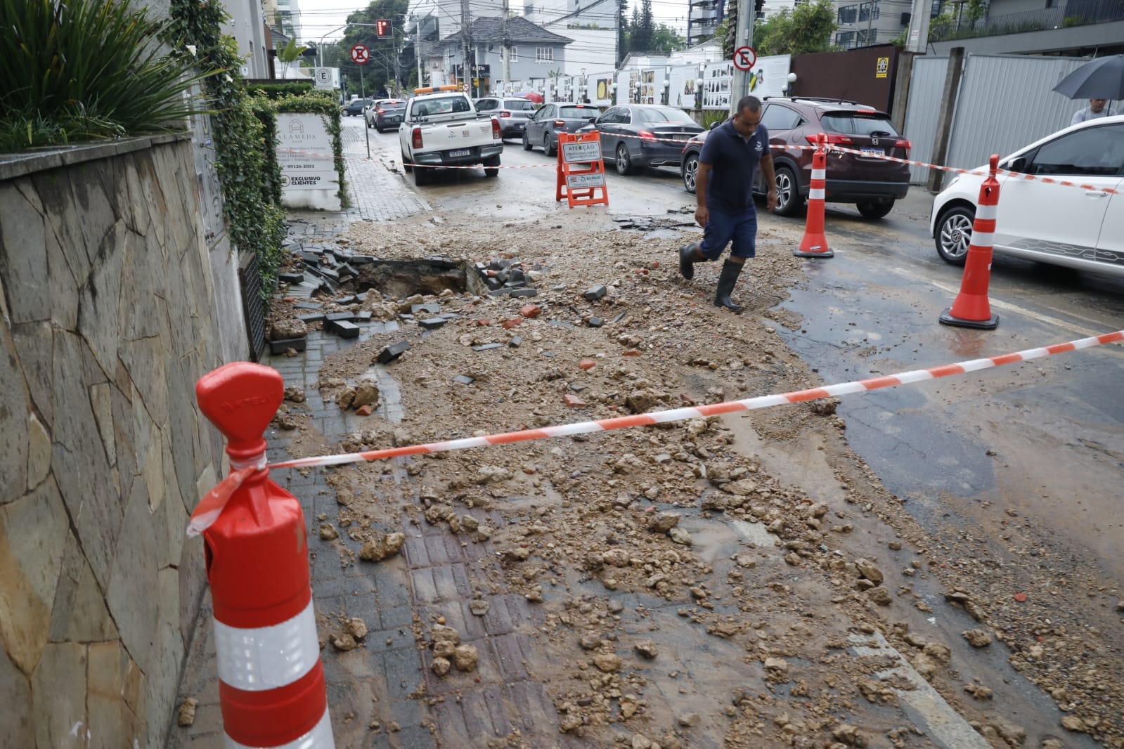Conforme o Samae, a rede de abastecimento foi fechada para que o trabalho pudesse ser feito. Se tudo ocorrer conforme o previsto, às 12h o abastecimento deve ser normalizado. O trânsito está sinalizado, mas com a rua em meia pista e a curiosidade, o fluxo é lento.