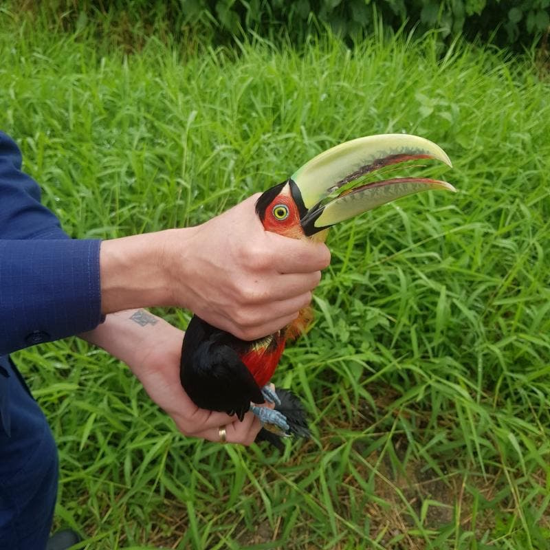 Um tucano esbarrou contra o vidro de uma cooperativa da cidade de Guabiruba no Médio Vale do Itajaí. O incidente assustou os funcionários do local que temeram pela saúde da ave. Por precaução, o Corpo de Bombeiros Militar da cidade foi acionado para verificar o estado de saúde do animal.