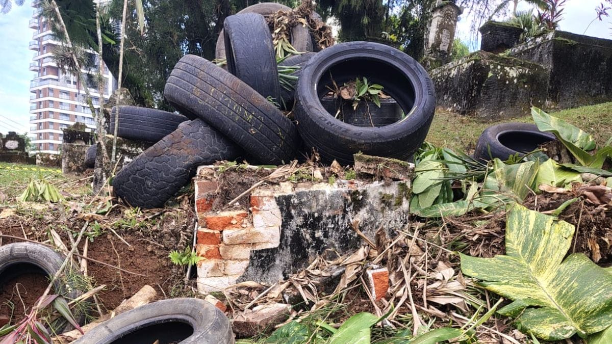 Imagens feitas no Cemitério dos Imigrantes mostram como ficaram os sete túmulos quebrados após um corte de árvore. Apesar das estruturas estarem protegidas, a queda de galhos pesados danificaram os túmulos antigos de Joinville. O caso aconteceu na última sexta-feira (24).