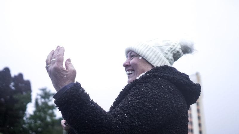 A presença de neve em Santa Catarina emocionou turistas que viram o fenômeno pela primeira vez nesta terça-feira (17). Em São Joaquim, Eva Silvana Rocha de 62 anos conseguiu prestigiar o momento após duas tentativas.