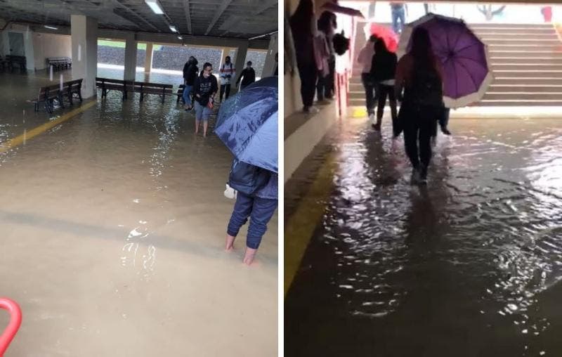 Vídeos gravados nesta quarta mostram parte da universidade alagada e os alunos ilhados. Em outras imagens, é possível ver estudantes atravessando o alagamento descalços ou molhando os calçados.