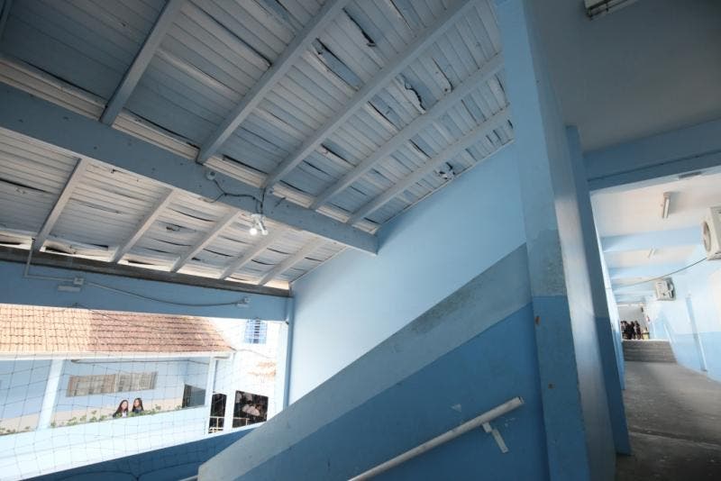 No bairro Boa Vista, na EBM Fernando Ostermann, o problema também está no telhado, previsto para ser reformado ainda este ano, segundo a pasta. A unidade deve ganhar ainda quatro salas novas, para jogos, artes, música e depósito. As melhorias são comemoradas pelo diretor Francisco de Oliveira Filho. O maior desafio, na avaliação do gestor, ainda é a acessibilidade. No colégio estudam ao menos 10 crianças com algum tipo de deficiência, dois deles física, o que compromete a locomoção dentro da unidade. Para ter aulas de informática, um aluno de 12 anos é levado no colo para a sala, que fica no segundo andar.