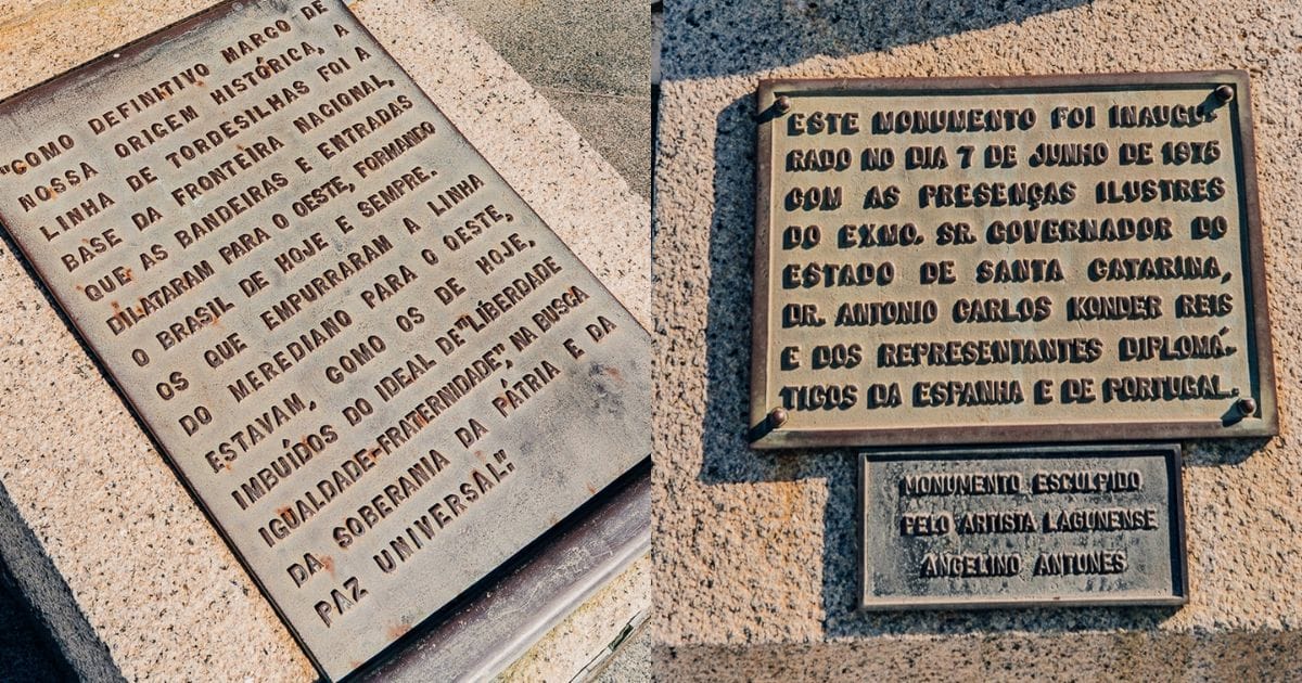 Marco histórico em Laguna representa a linha que dividiu terras entre Portugal e Espanha (Foto: Secretaria de Turismo e Lazer de Laguna, Reprodução)