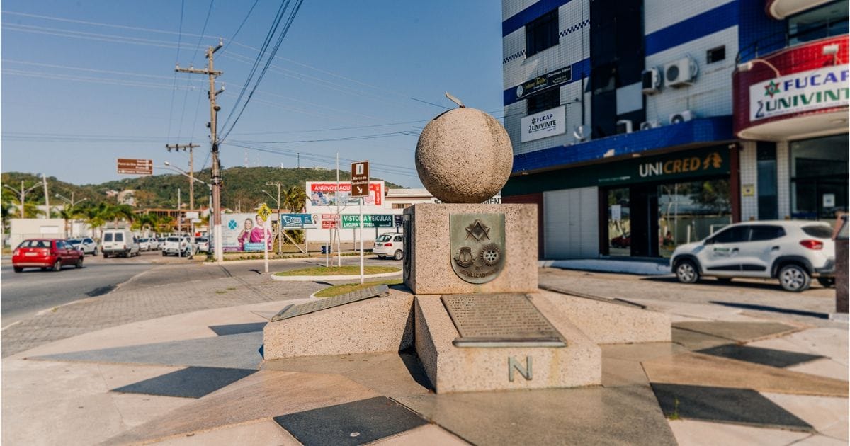 Marco na cidade lembra passagem da linha do Tratado de Tordesilhas por Laguna (Foto: Secretaria de Turismo e Lazer de Laguna, Reprodução)