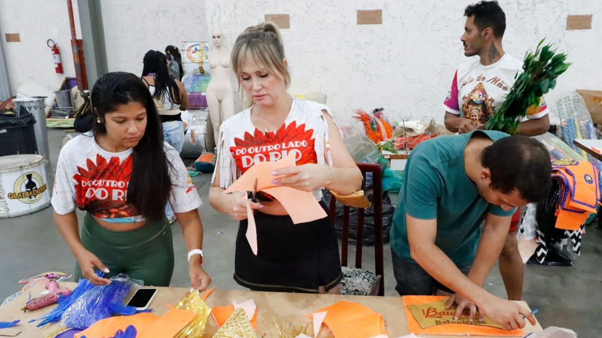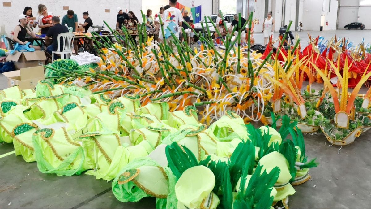 Na preparação para o desfile, o Expocentro Edmundo Doubrawa foi transformado em um grande ateliê. Cerca de 150 voluntários se revezam durante a semana para dar forma às fantasias que serão usadas no desfile.