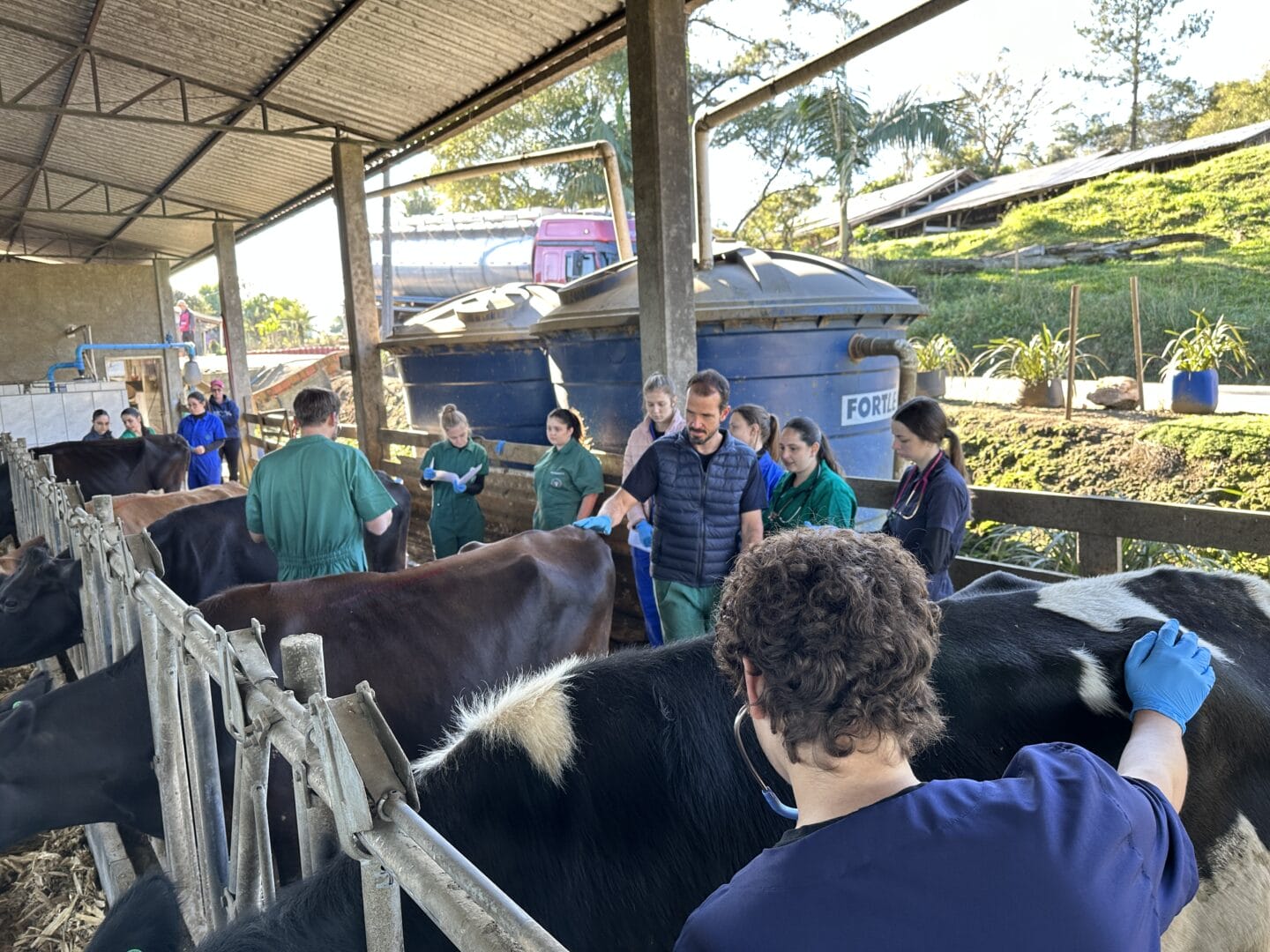 Ainda, a formação profissional também contempla clínica e cirurgia de pequenos animais, além de áreas como inspeção, segurança dos alimentos, biosseguridade e gestão agroindustrial. A coordenadora comenta que a base do curso é uma formação generalista, com fundamento científico e uma forte inserção prática desde os primeiros meses de aula.