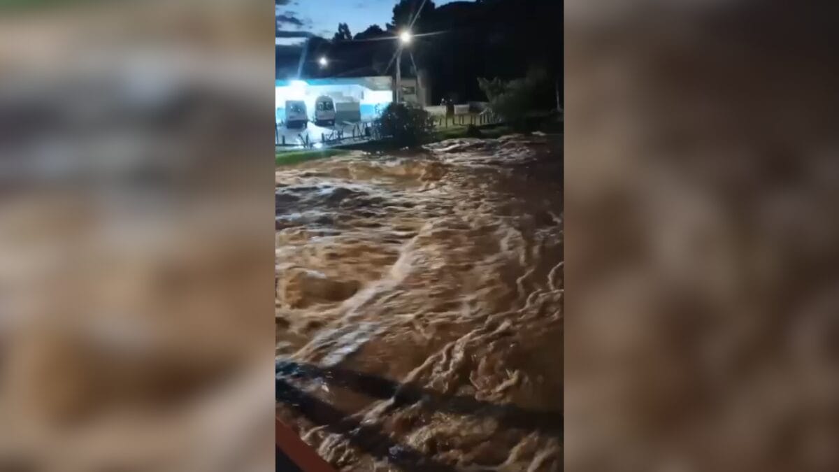 Imagens que circulam nas redes sociais mostram um rio que teria transbordado por conta do grande acumulado de chuva em poucas horas. Em outro vídeo, a cachoeira, conhecida por congelar durante os dias frios de inverno, foi registrada com um grande volume de água de cor marrom descendo.