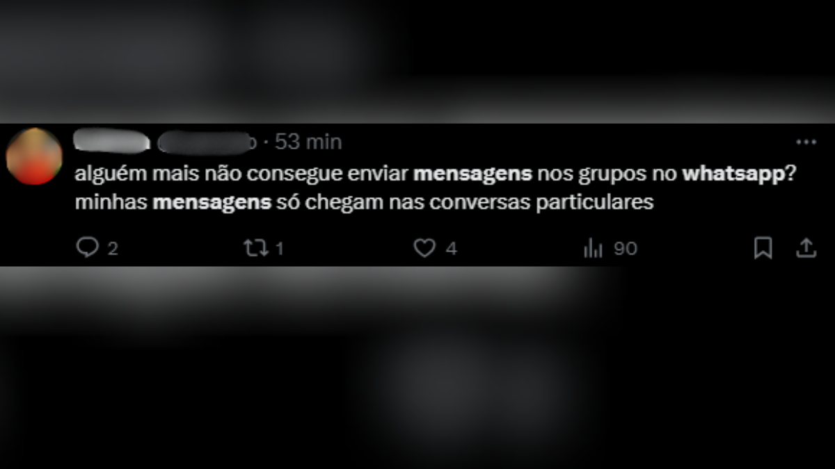 As reclamações diminuíram nos minutos seguintes, mas voltaram a ser registradas perto das 10h. Na rede social X, a palavra “WhatsApp” estava nos trends, com 141 mil posts publicados. Segundo os relatos, a principal dificuldade é no envio de mensagens em grupos.