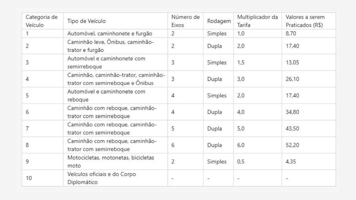 O reajuste é autorizado pela Agência Nacional de Transportes Terrestres (ANTT), conforme publicado em 15 de dezembro de 2025, no Diário Oficial da União.