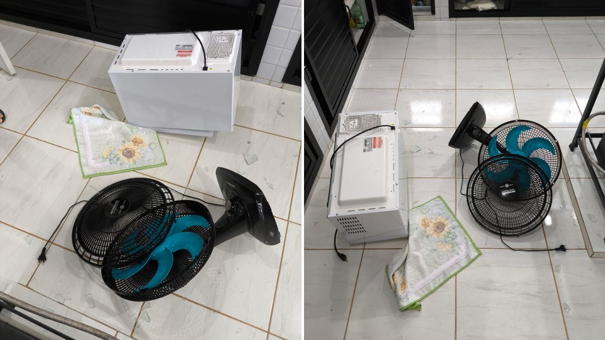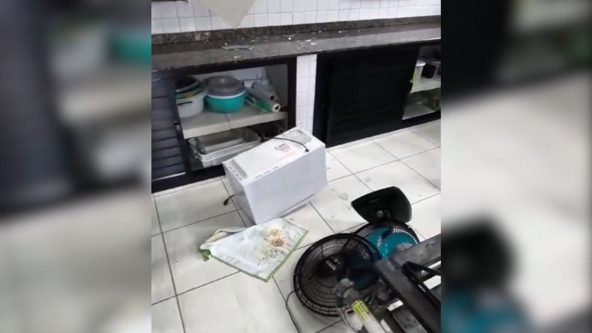 Na sala da direção, a janela e a grade foram danificadas, além de estar com diversos objetos revirados. Na sala dos professores, a janela foi arrombada e o armário foi revirado. Na cozinha, a janela e os armários foram danificados, além de alimentos estarem espalhados pelo chão.