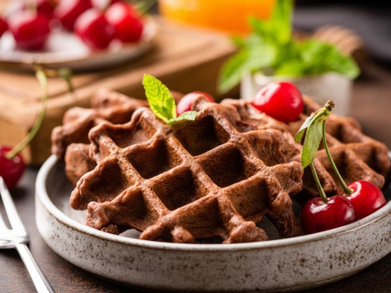 Dica: sirva acompanhado de cerejas. Se preferir, faça os waffles em uma frigideira.