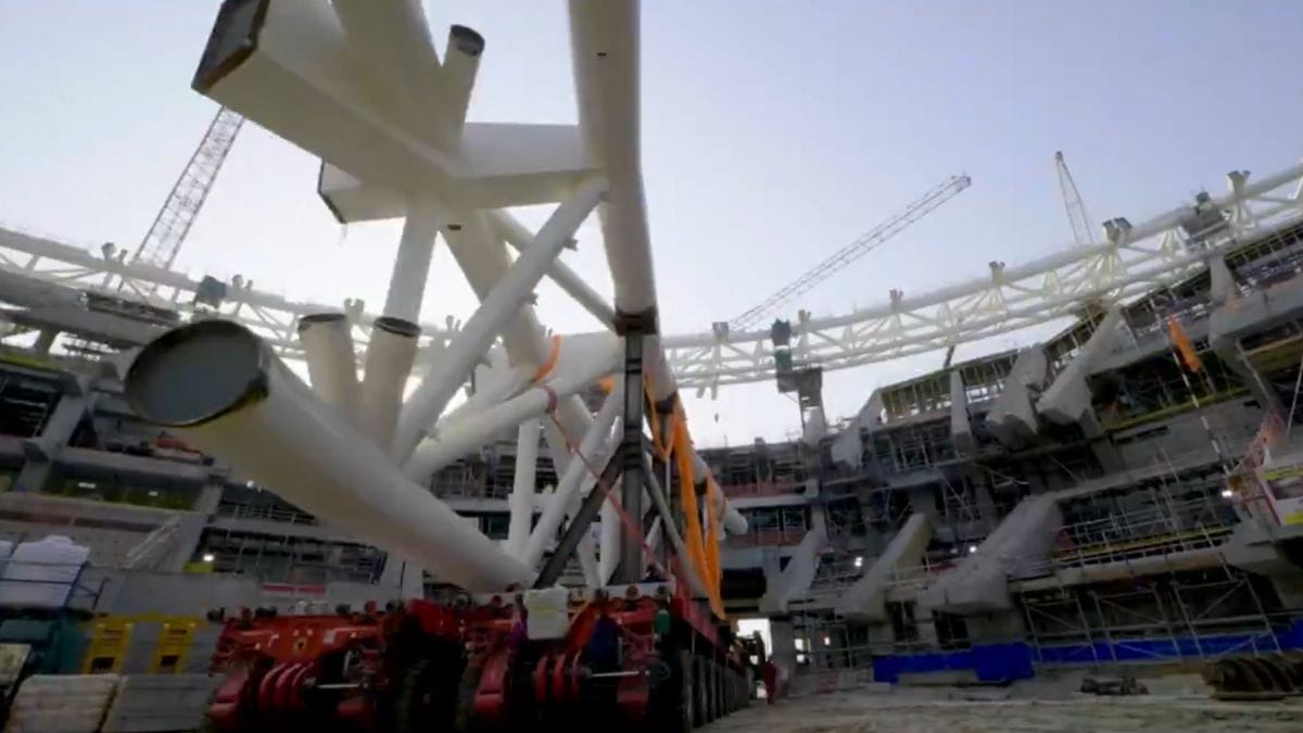 O vídeo publicado no X, no dia 16 de dezembro, mostra as máquinas trabalhando na instalação da estrutura de ferro que sustentará a cobertura. Além disso, é possível identificar os camarotes, que já estão fechados, apesar da necessidade de finalizar a área interna.