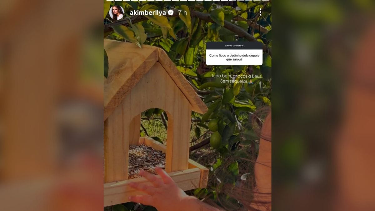 Amanda Kimberly, mãe de Helena, com o jogador Neymar, foi às redes sociais mostrar como ficou a mão da bebê meses após o grave acidente doméstico sofrido. Em outubro de 2025, Helena quase teve o dedo decepado após prendê-lo numa porta em casa.