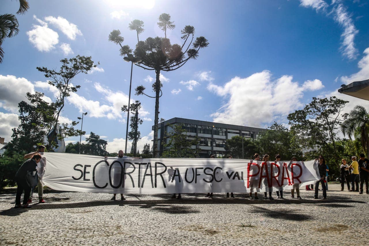 Camboriú (SC) – Estudantes do Instituto Federal Catarinense (IFC) aderiram ao movimento nacional. Com faixas e cartazes, eles interromperam temporariamente o trânsito na rótula da Avenida Santa Catarina, principal entrada da cidade. Durante a tarde, o protesto deve seguir na Praça da Figueira, no Centro.