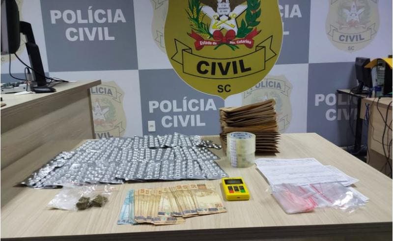 Em uma casa em Massaranduba a Polícia Civil apreendeu 108 comprimidos do remédio usado em abortos, R$ 3 mil, uma máquina de cartão usada para cobrança em entregas pessoais e uma pequena porção de cocaína. No endereço de Joinville foram apreendidos 640 comprimidos e envelopes.