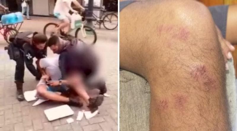 Vídeos mostram alguns trechos da ação. Em um deles, enquanto dois guardas o seguram e o forçam a sentar no chão, o menino pede ajuda e diz que está apenas trabalhando. Neste momento ele sofre o primeiro “mata-leão”. Pessoas que passam pelo local gritam contra a ação covarde, dizem que não há necessidade de algemas e repetem que o vendedor não é bandido.