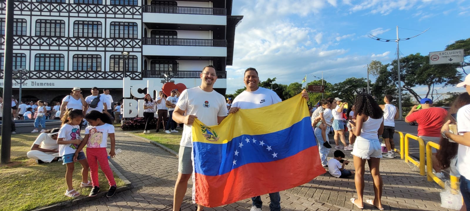 Veja fotos da manifestação de venezuelanos em Blumenau