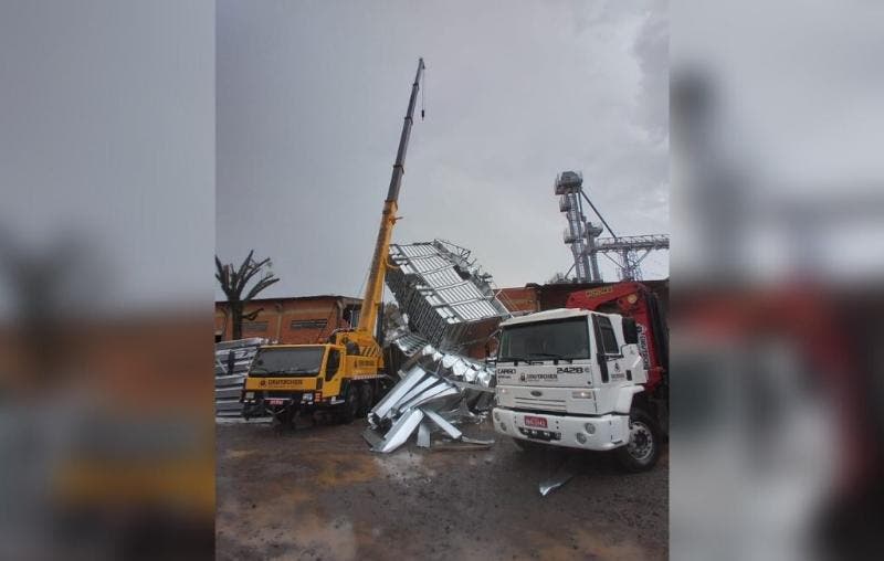 O vento também causou o destelhamento de 15 imóveis em Pinhalzinho. A Defesa Civil ainda faz o levantamento dos estragos na região.