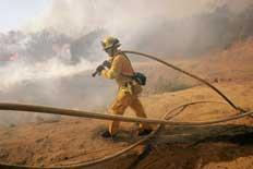 A redução dos ventos ajudou nesta segunda-feira os bombeiros do sul da Califórnia a controlar os incêndios que queimaram mais de 800 casas e obrigaram dezenas de milhares de pessoas a abandonar seus lares no fim de semana. Mais de 16.500 hectares de florestas foram queimados desde sexta-feira entre os condados de Santa Bárbara e Los Angeles devido a temperaturas próximas a 30 graus e rajadas de vento de quase 100 km/h.