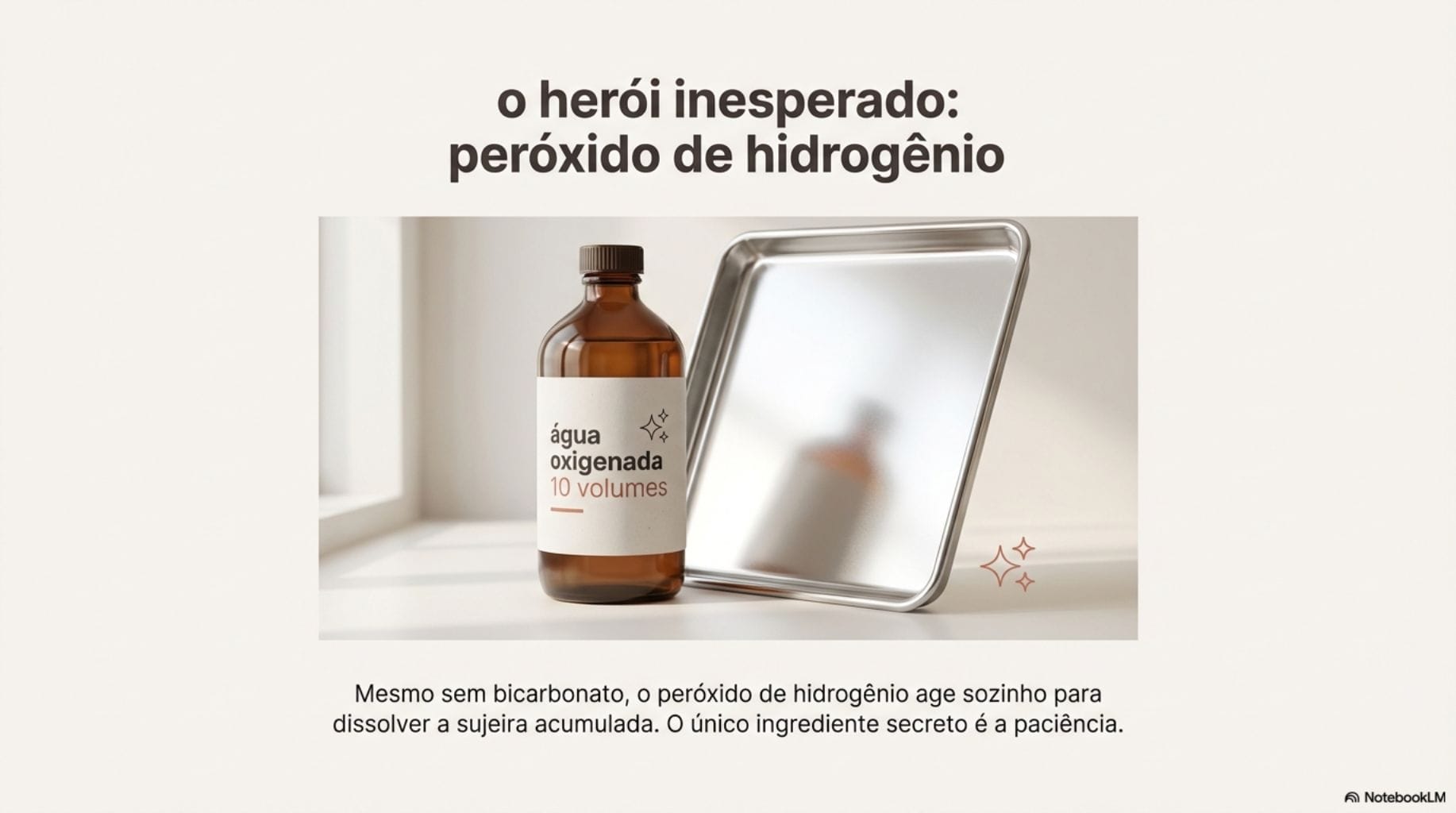 Se você está sem bicarbonato em casa, o peróxido de hidrogênio sozinho já ajuda bastante a remover sujeira acumulada nas assadeiras. Segundo o House Digest, ele funciona bem mesmo sem misturas, desde que tenha tempo suficiente para agir.