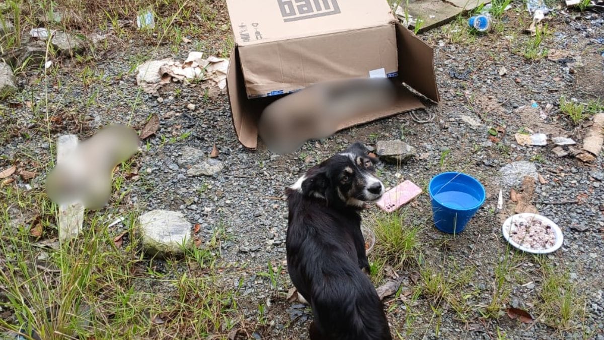 Veja vídeo que mostra o abandono da cachorra e seus filhotes em Joinville