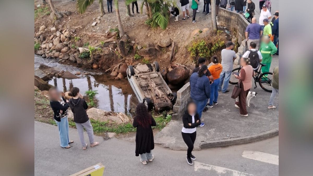 Segundo os bombeiros, a motorista do Kia estava andando pela rua, aparentemente nervosa com a situação, mas sem nenhum ferimento. Já o motorista e passageira do Renault Megane estavam sentados no barranco ao lado do rio, conscientes.