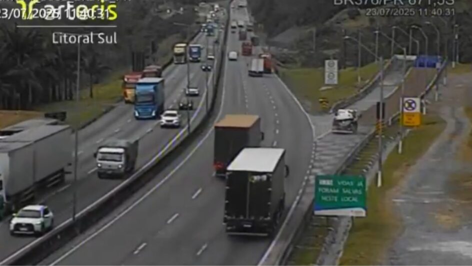 Conforme a Arteris Litoral Sul, que administra o trecho, o veículo estava a 50 km/h quando adentrou 17 metros na área de escape. Ninguém ficou ferido na ocorrência.