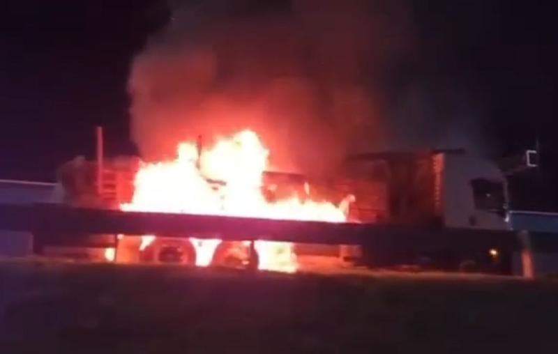 Segundo informações do comandante dos Bombeiros, uma moto teria batido na parte traseira do caminhão, o que pode ter provocado o incêndio. Apenas o motociclista ficou ferido.