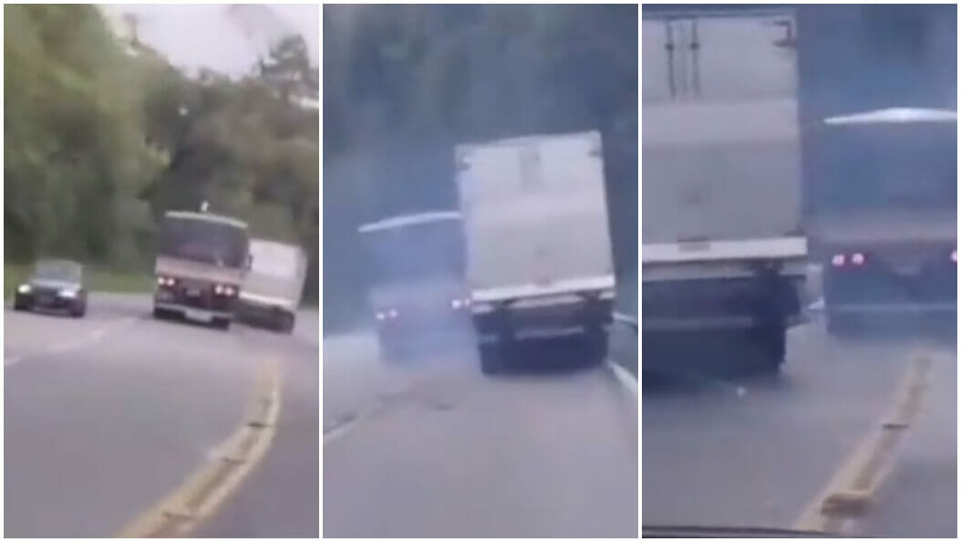 Dois caminhoneiros protagonizaram uma perigosa briga na rodovia SC-418, a Serra Dona Francisca, jogando um veículo em cima do outro em tentativas de ultrapassagem na sinuosa descida do trecho. Um motorista que circulava logo atrás conseguiu filmar a cena, que quase terminou com um acidente.