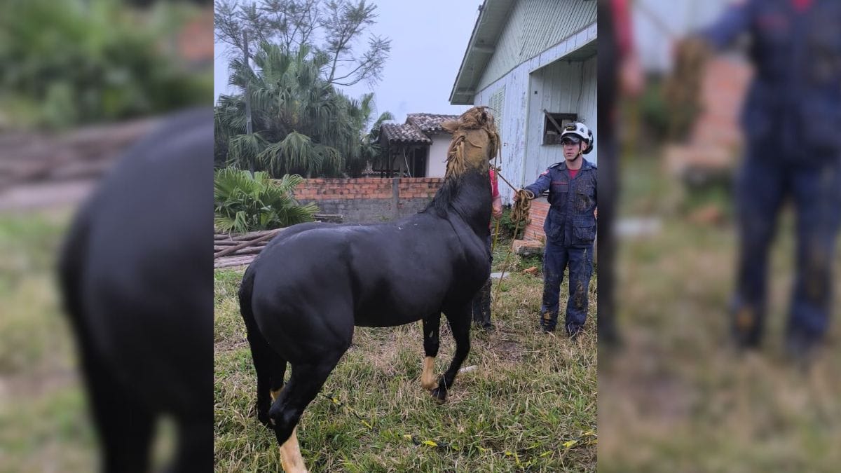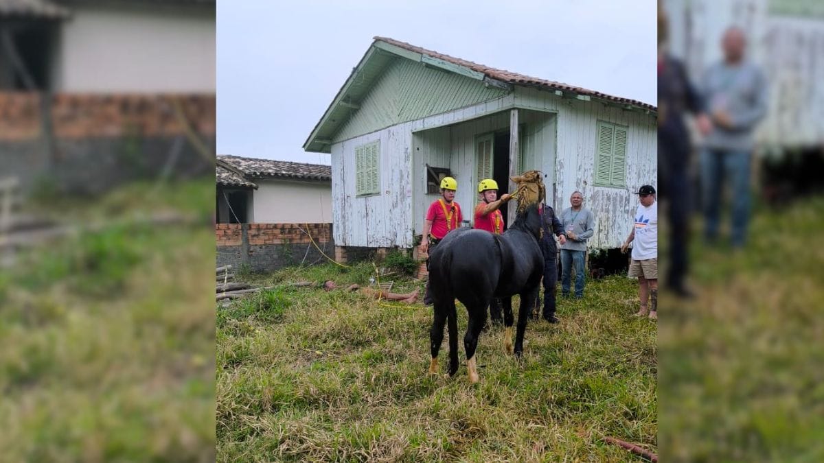 Um cavalo de aproximadamente 13 anos foi resgatado nesta segunda-feira (18) em Criciúma, após cair em um poço abandonado. Segundo informações do Corpo de Bombeiros, o cavalo ficou agitado durante a operação, o que dificultou o resgate.