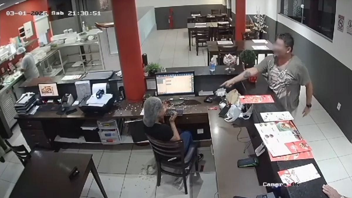 — Ele atacou e acabou machucando ela, quebrou o teclado do computador e desferiu palavras de baixo calão para o nosso cliente que estava ao lado, sendo atendido por uma outra pessoa, e ameaçou quebrar o restaurante todo. A menina se machucou e ficou totalmente bloqueada, mentalmente, no momento. A minha gerente mais velha só tirou ela do local, com medo de ser agredida fisicamente novamente — informou Marco Alexandre, responsável pela operação do estabelecimento.