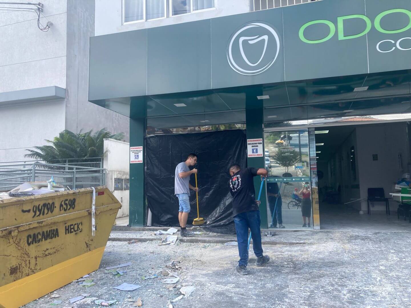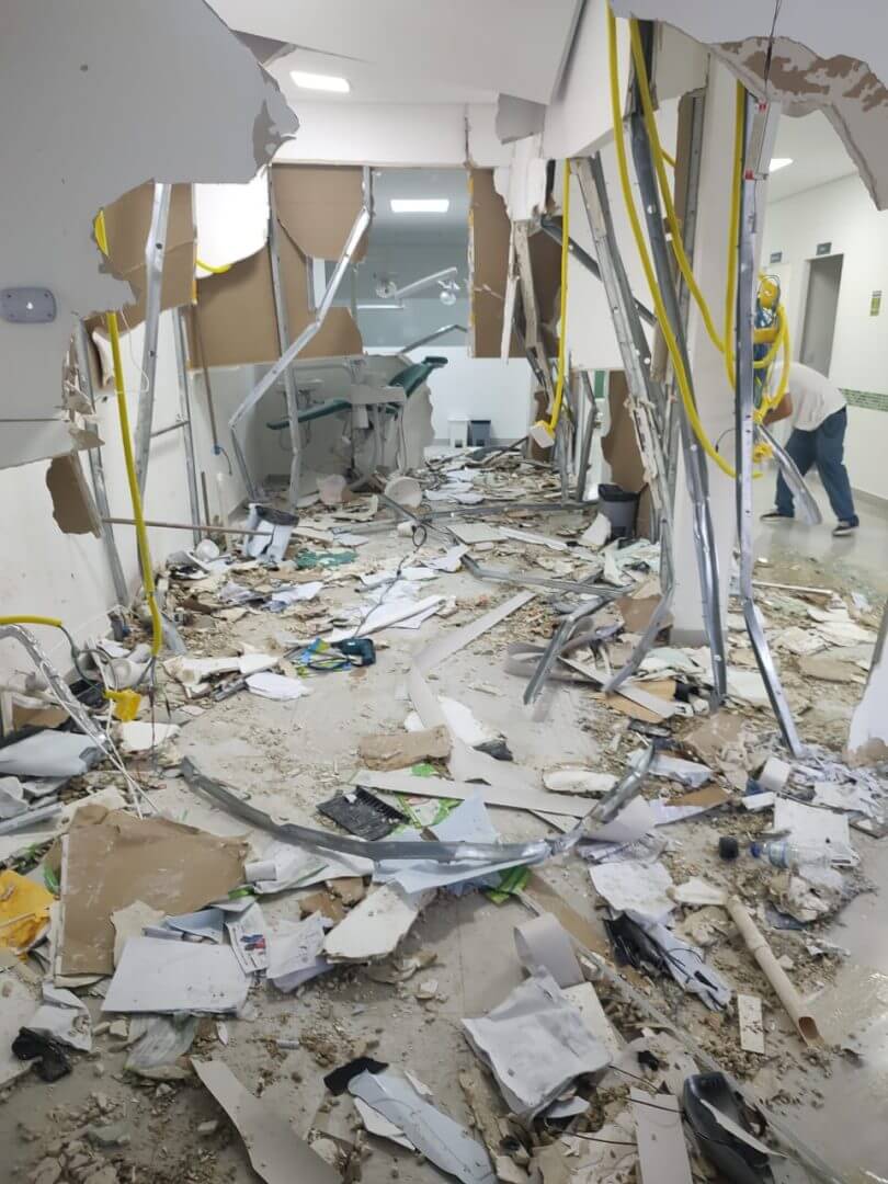 Segundo o proprietário, além da reconstrução da fachada do estabelecimento, terão de gastar com a compra de equipamentos, como cadeiras para recepção e de pacientes dos dentistas, além de equipamentos odontológicos que foram destruídos. Ele estima um prejuízo em torno de R$ 50 mil.