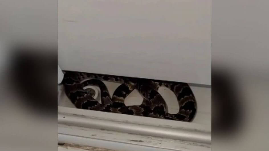 Uma moradora encontrou uma cobra dormideira no vão da porta de correr da própria casa nesta terça-feira (20), em Jaraguá do Sul. Para o resgate, ela acionou a Fundação Jaraguaense de Meio Ambiente (Fujama).
