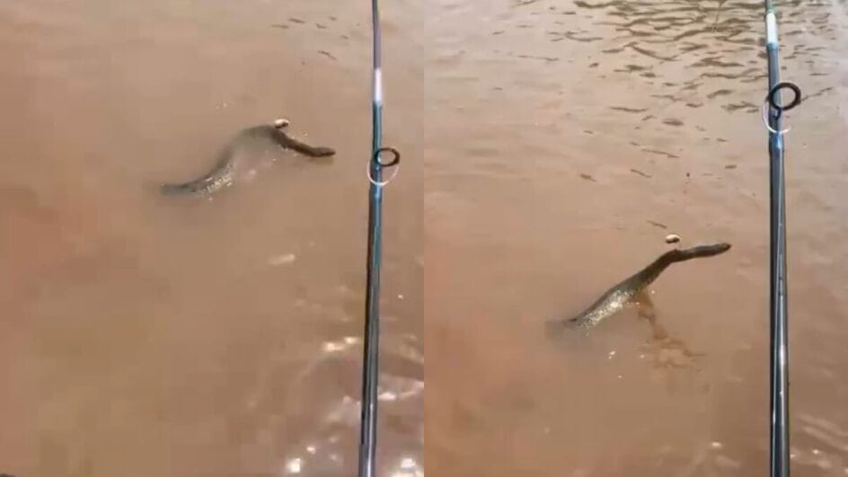 A pesca inusitada aconteceu na sexta-feira (21), quando o guia de pesca Maicon Douglas estava no rio junto a turistas praticando a pesca esportiva. Ele ficou surpreso ao ver o animal.