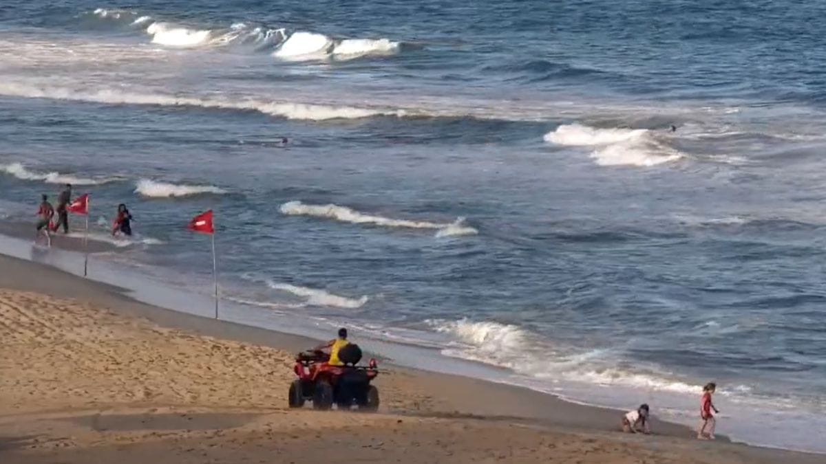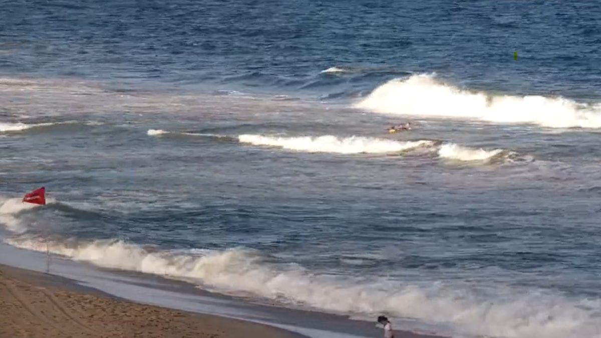 Nas imagens, é possível ver que o homem estava na água em um trecho de bandeira vermelha, ou seja, com alerta de alto risco de afogamento. Profissionais do Corpo de Bombeiros Militar se lançaram ao mar e realizaram o resgate com sucesso.