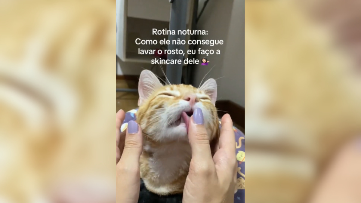 O gato Rosquinha fez sucesso nas redes sociais depois que a dona, Anny Schäfer, compartilhou um vídeo da “rotina noturna de skincare” do animal. O registro foi publicado no TikTok e, até esta quarta-feira (15), tinham mais de 1,7 milhões de visualizações.