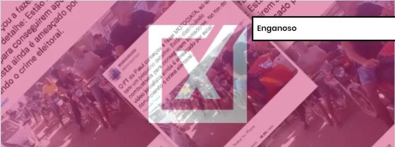 Conteúdo investigado: Tuíte exibe vídeo de 45 segundos que mostra uma fila de carros e motos em um posto de gasolina. A gravação é narrada por um homem que pergunta às pessoas quanto irão receber de combustível e quem está organizando a distribuição. O conteúdo é acompanhado por legenda que afirma que o PT do Piauí está pagando gasolina à população para conseguir apoiadores para uma motociata. O texto também cita que o autor da filmagem foi ameaçado por denunciar crime eleitoral.