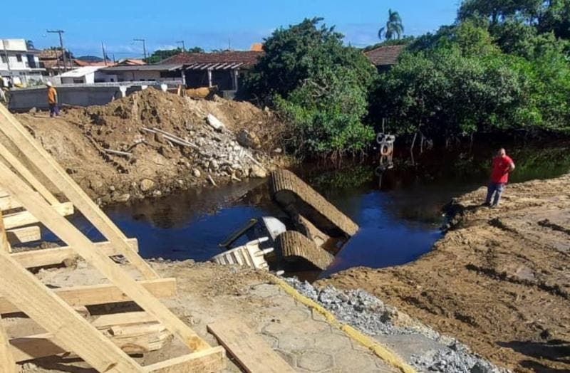 A ponte antiga foi desmanchada para dar lugar a uma nova estrutura, que será construída com recursos estaduais, arrecadados por meio de emendas parlamentares. Com o acidente envolvendo a escavadeira, as obras devem ser retomadas na próxima segunda-feira (9).