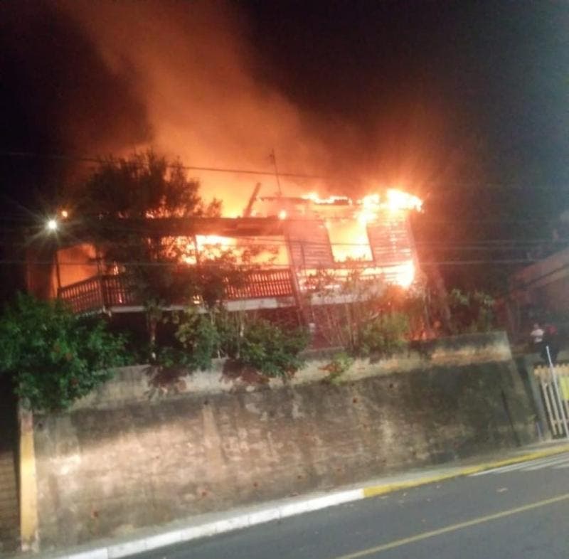 O fogo destruiu uma casa no Centro de Videira, no Oeste de Santa Catarina, no final da noite deste sábado (10). O incêndio ocorreu na Rua Marechak Floriano Peixoto, próximo a uma escola. Não havia ninguém no local quando as chamas começaram.