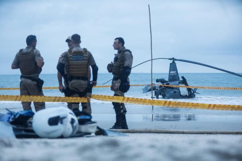 Testemunhas relatam desespero em resgate após helicóptero cair em praia em Florianópolis