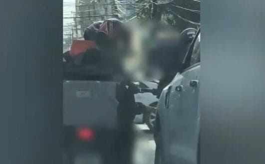 Uma mulher estava na garupa da moto e tenta esconder a placa ao notarem que estavam sendo filmados. Não adiantou, pois já tinham sido gravados. Com base nas imagens a Polícia Militar disse que no dia 28 de junho aquele motociclista foi parado em uma abordagem e teve o veículo recolhido por estar com os pneus “carecas”.