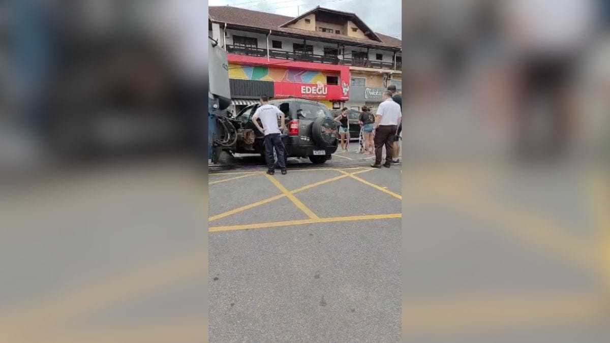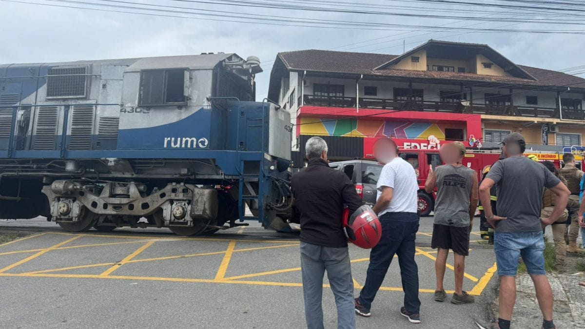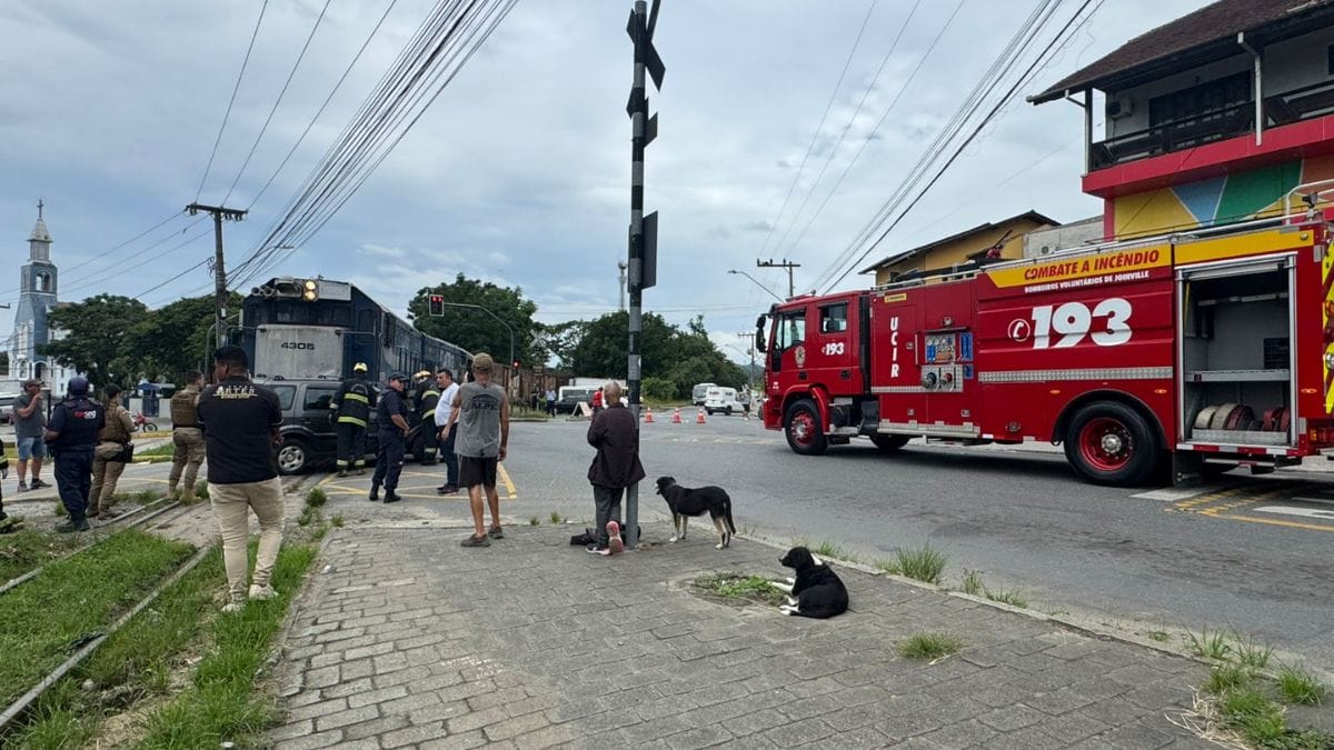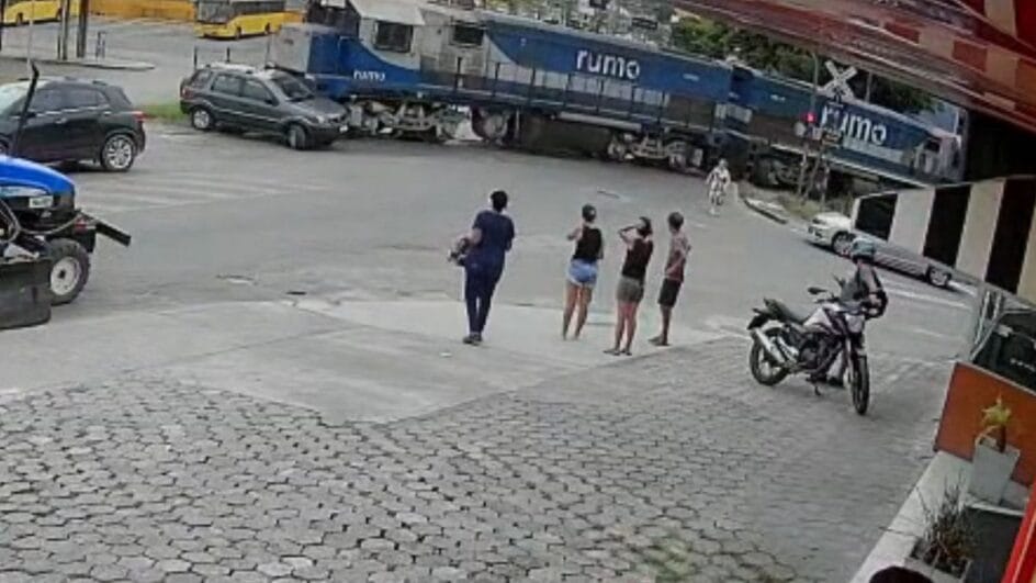 O caso aconteceu na Rua Monsenhor Gercino, em frente ao Terminal de Ônibus do Itaum, por volta das 13h40min. A câmera de segurança de uma loja flagrou o exato momento do acidente. A motorista relatou à PM que estava passando pela linha de trem quando escutou o barulho do veículo, ficou nervosa e deixou o carro “apagar”.